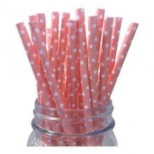 Beyaz Puantiyeli Pembe Karton Pipet 19,5x0,6 Cm 12 Adet