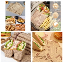 Yemek sunumunuza nostaljik bir dokunuş katın ve sunumlarınızı benzersiz kılın! Vintage gazete desenli sunum kağıdı, hem göz alıcı bir estetik sunar hem de kullanım kolaylığı sağlar. Bu özel tasarım yağlı kağıt, dayanıklı yapısı ve su geçirmez özelliği sayesinde sandviç, hamburger ve diğer lezzetli yiyeceklerinizi güvenle sararak sunmanızı mümkün kılar. Retro gazete desenleri ile sofralarınıza klasik bir hava katan bu ürün, aynı zamanda hijyenik ve gıda temasına uygun malzemelerden üretilmiştir.