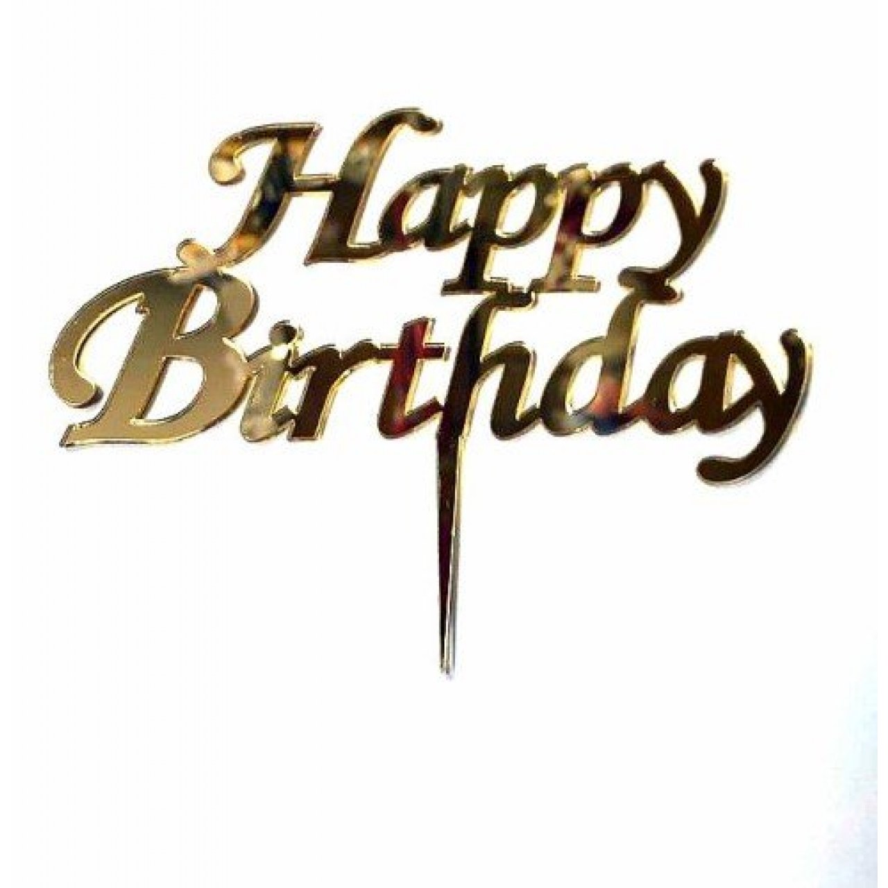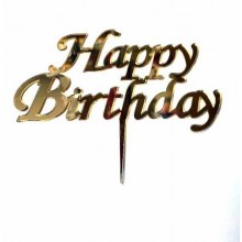 Happy Birthday Altın Pleksi Genişlik 11,5 Cm Toplam Yük. 12 Cm Sap Uzunlğ. 5 Cm