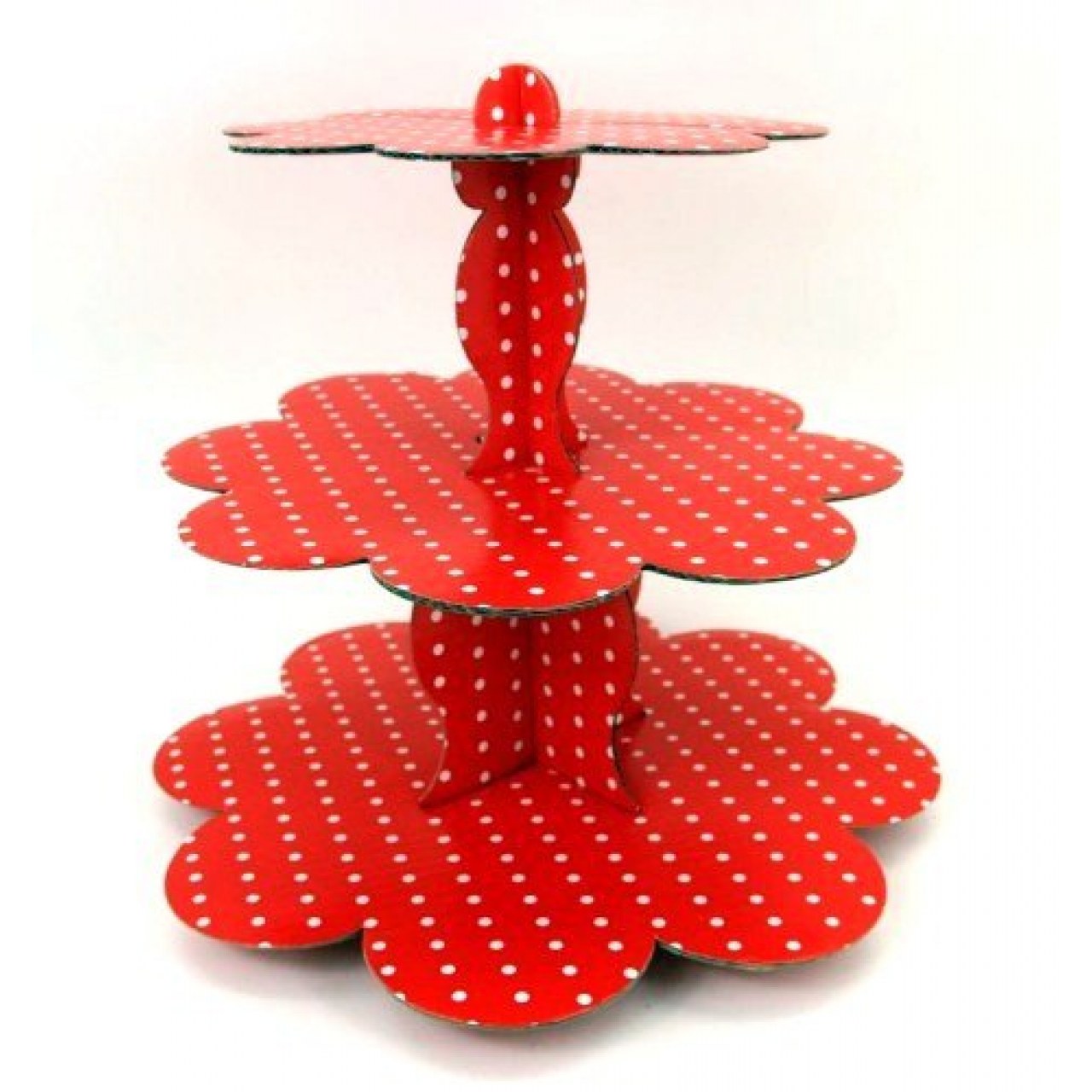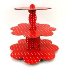 Karton Cupcake Stand Kırmızı Üzeri Beyaz Puanlı Çap 25 Cm-35 Cm-40 Cm Yükseklik 32 Cm