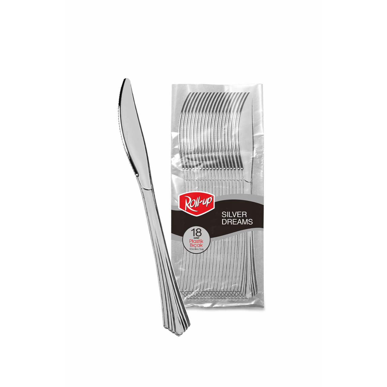 Metalik Gümüş Görünümlü Kullanat Plastik Bıçak 18.5 Cm 18 Li Paket