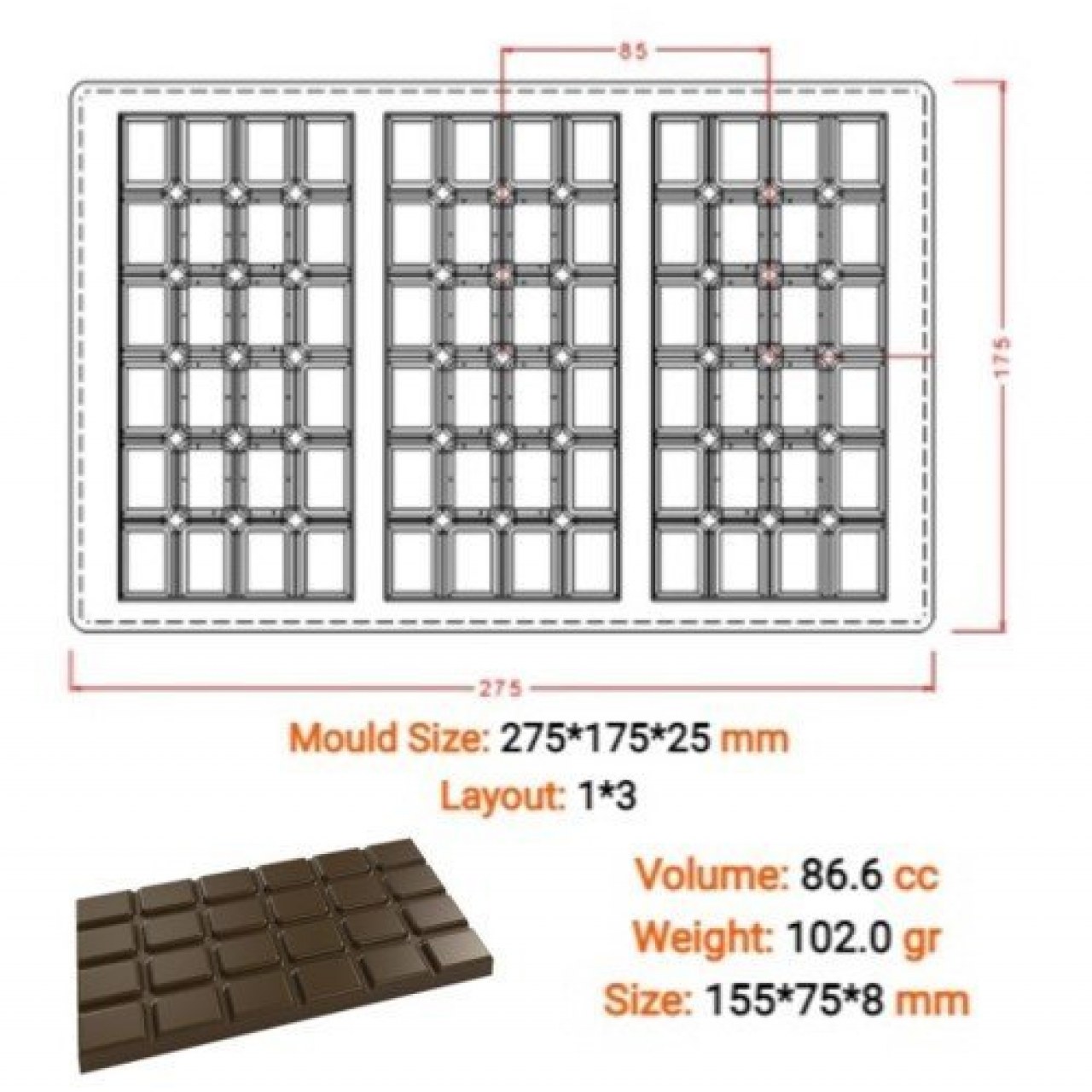 Polikarbon Çikolata Kalıbı Büyük Tablet 3 lü