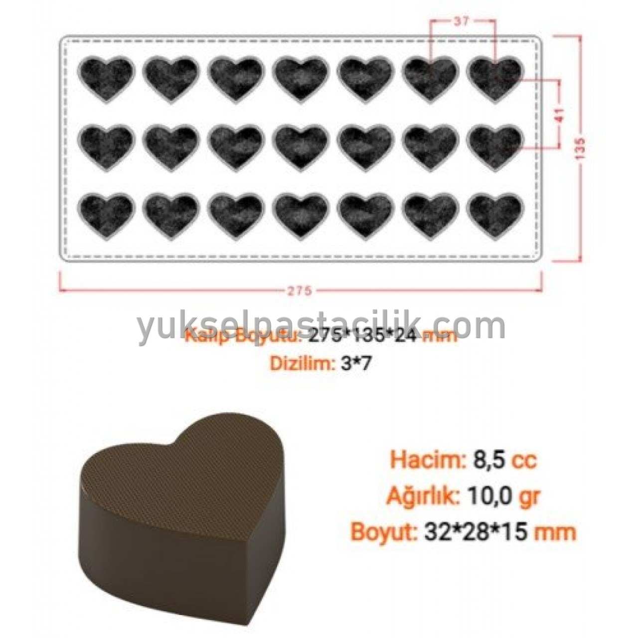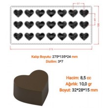 Polikarbon Çikolata Kalıbı Kalp 21 li