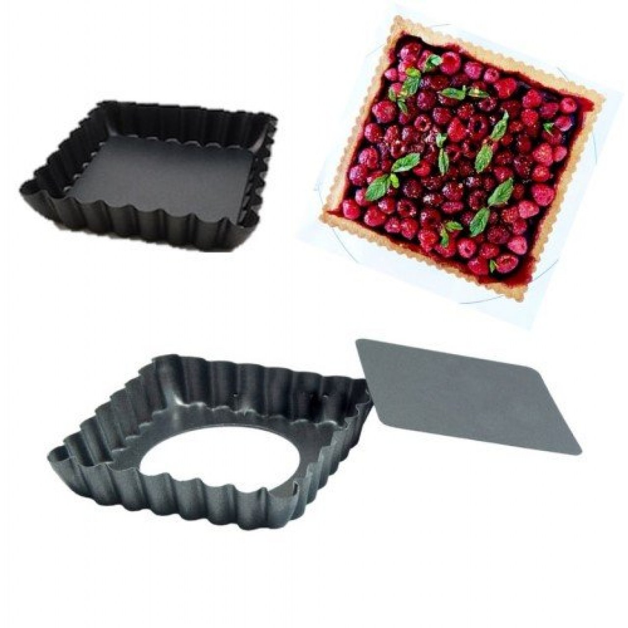 Teflon Altı Çıkabilen Kare Küçük Tart Kalıbı Çap 10 Cm Derinlik 2 Cm