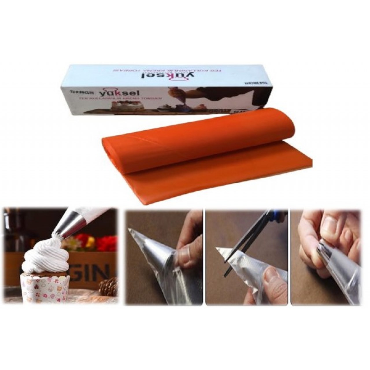 Tek Kullanımlık Krema Sıkma Torbası Orta Boy Turuncu 60 Adet
