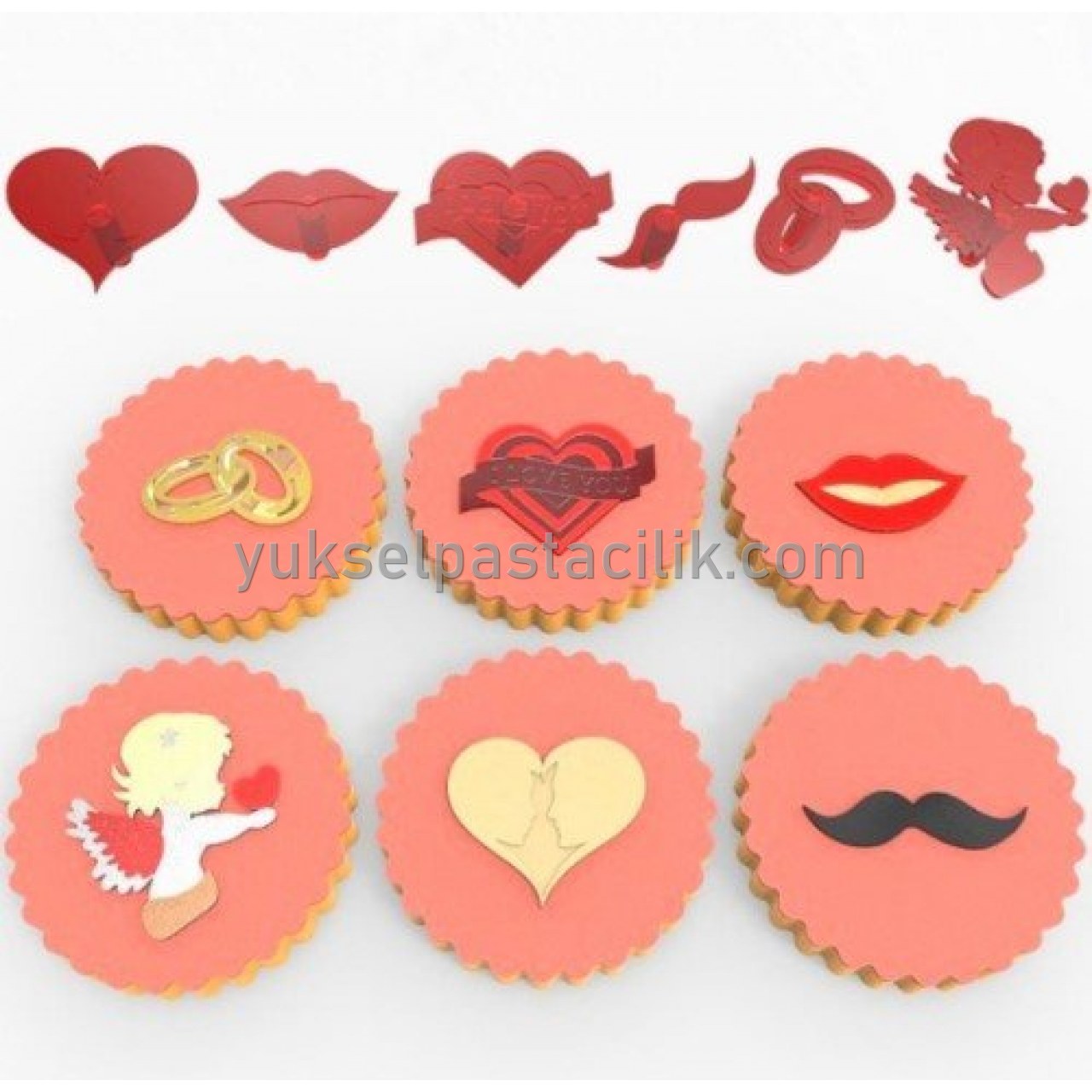 Bıyık 0,9X3,6 Cm, Dudak 1,7X3,1 Cm, I Love You 2,8X3,7 Cm, Melek 3,7X3,5Cm, Yüzük 2,2X3 Cm, Yüzyüze Kalp 2,8X3,2 Cm
