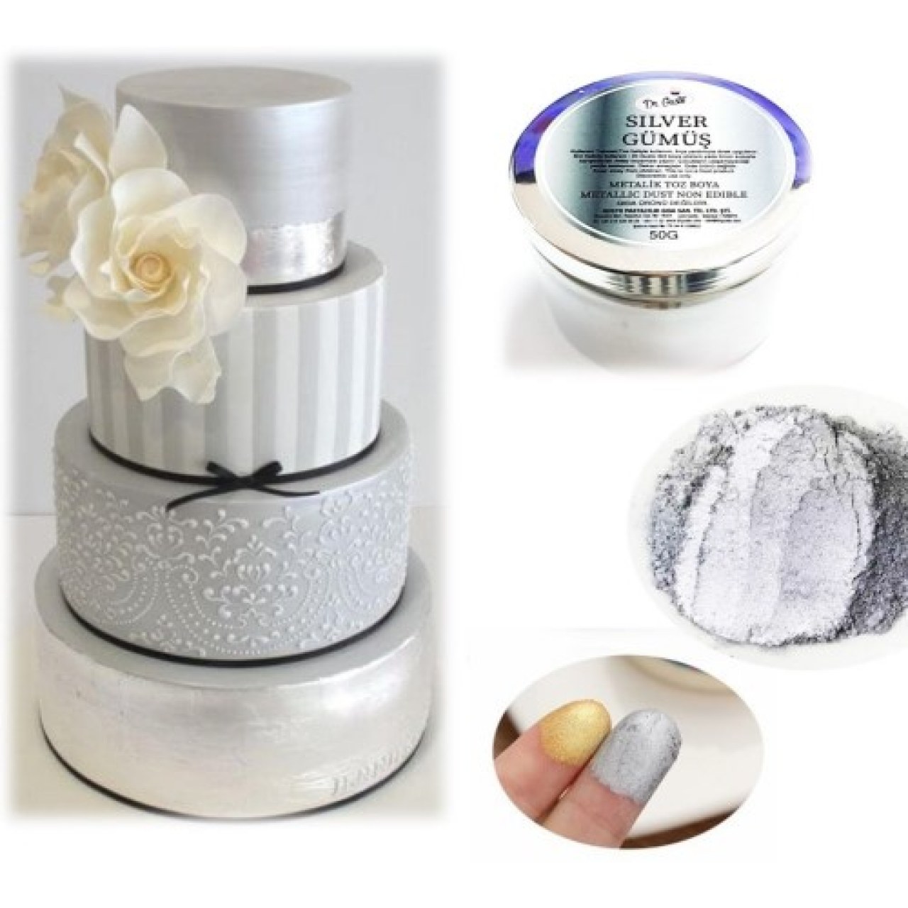 Gıda ürünü değildir.Toz haliyle fırça yardımıyla direk uygulanır.Likit boya çözücü yada limon suyuyla karıştırılarak sıvı hale getirilerek detay boyamalar yapılabilir.