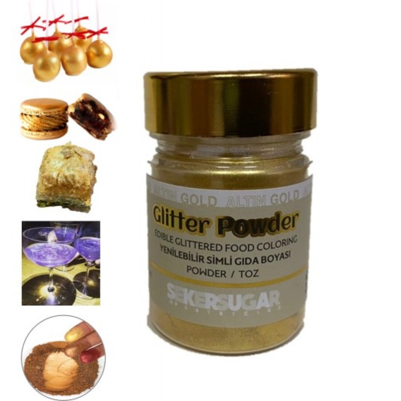 Şeker Sugar Glitter Yenilebilir Simli Altın Toz Gıda Boyası 10 Gr