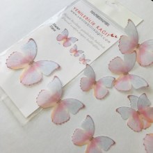 Ürün yenilebilir bir kağıttır.Pasta ve kurabiyelerin üzerinde 3 boyutlu çalışmalar yapılabilmesi için yenilebilir kağıt üzerine değişik desen ve renklerde kelebek baskıları yapılmış ve kesilerek kullanıma hazır hale getirilmiştir.Pasta ve Kelebeklerin tam orta kanat kısmından hafifçe katlayıp pastanızın üzerine kondurup 3 boyutlu uçuşan kelebekler yapabilirsiniz.Jelatinin içinde güneş ve nemden uzak serin oda ısısında aylarca tazeligini korur.