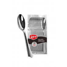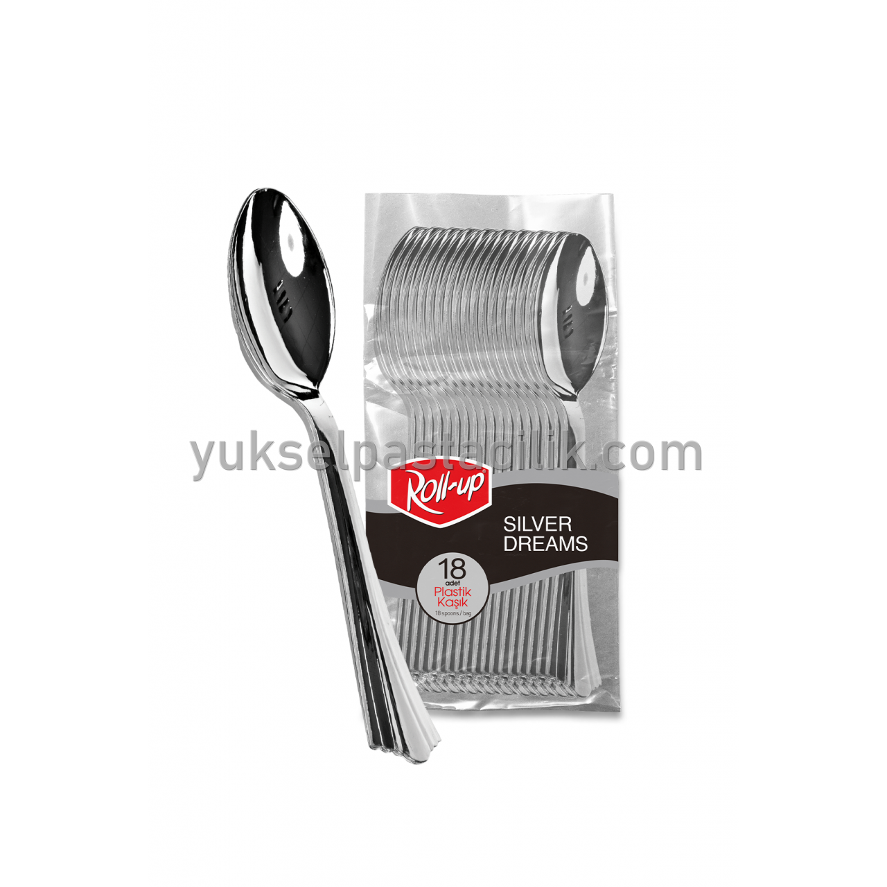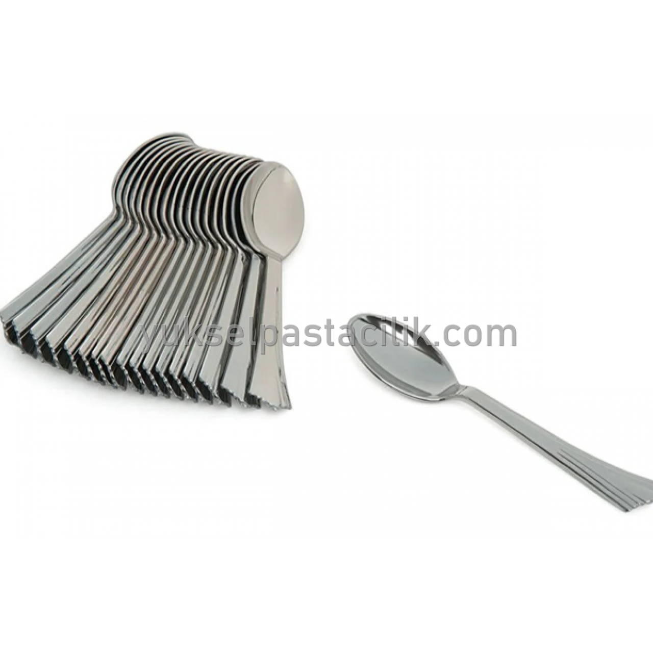 Metalik Gümüş Görünümlü Kullanat Plastik Kaşık 15.5 Cm 18 Li Paket