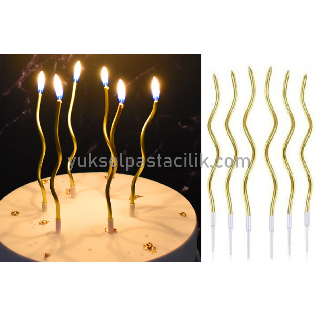 Altın Spiral Mum 15 Cm 6 Adet