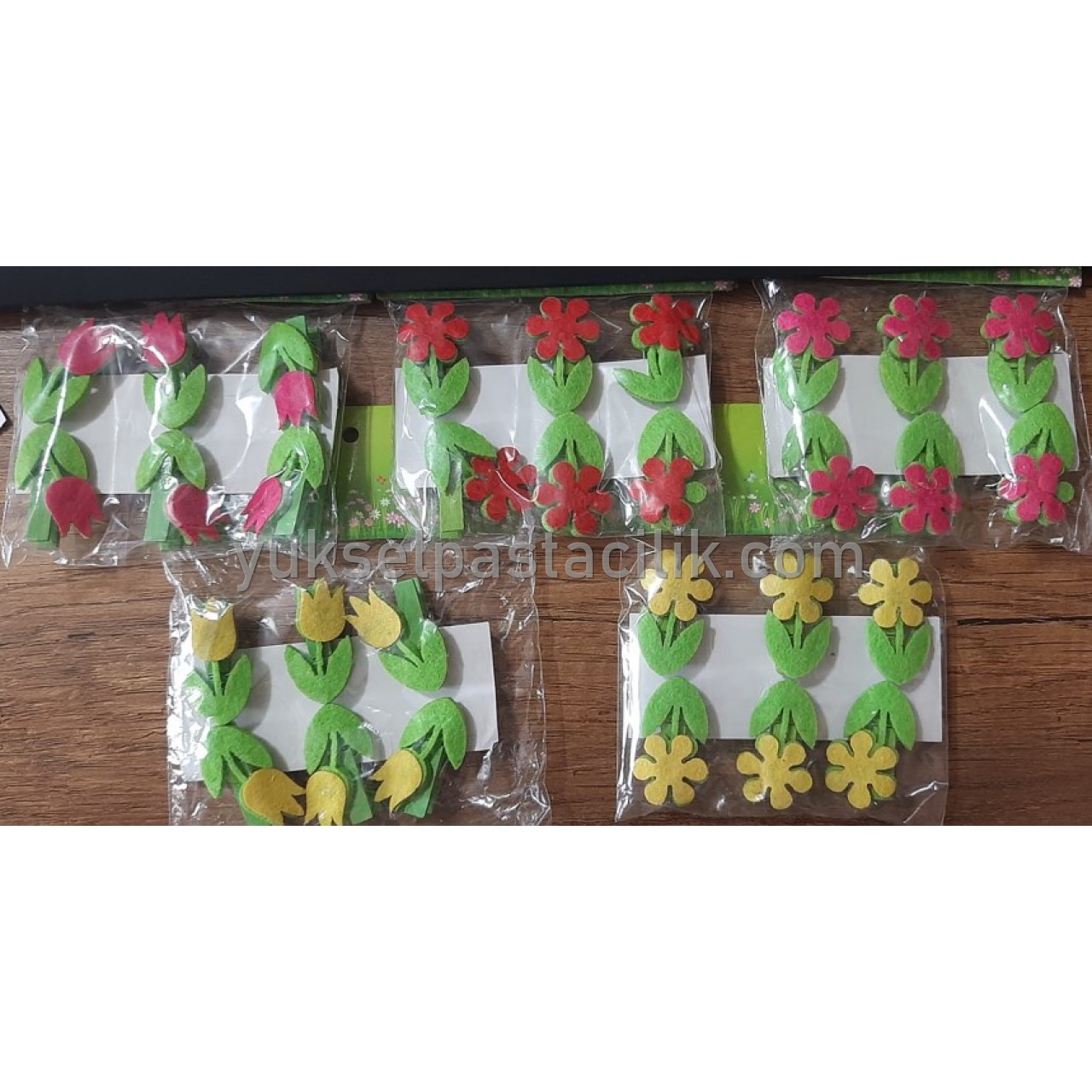 Keçe Çiçekten Ahşap Yeşil Mandal 6 lı paket