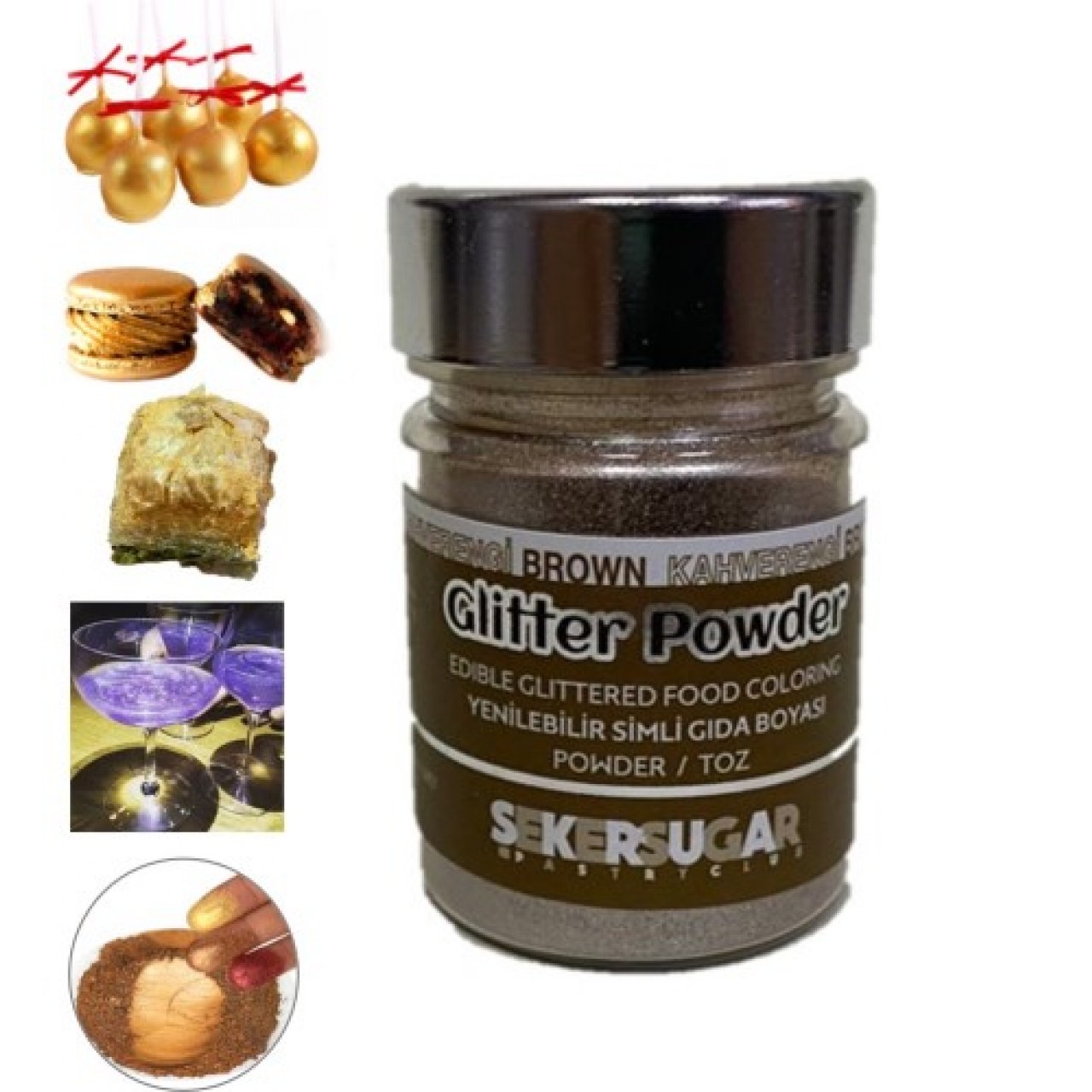 Şeker Sugar Glitter Yenilebilir Simli Kahve Toz Gıda Boyası 10 Gr
