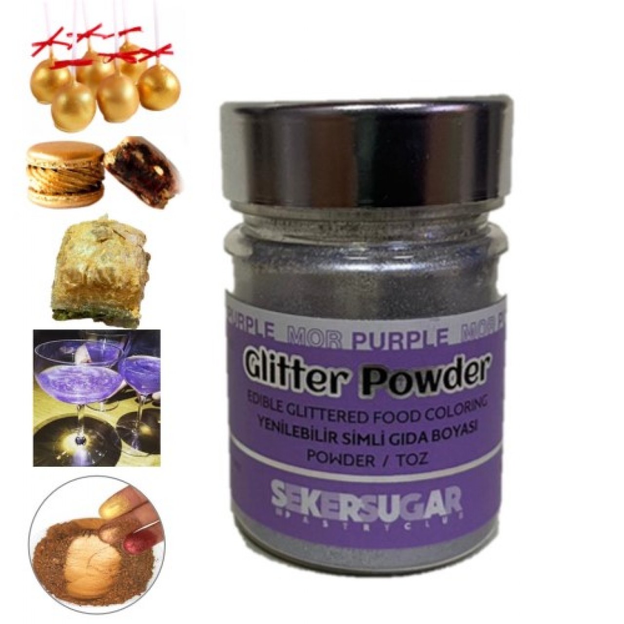 Şeker Sugar Glitter Yenilebilir Simli Mor Toz Gıda Boyası 10 Gr