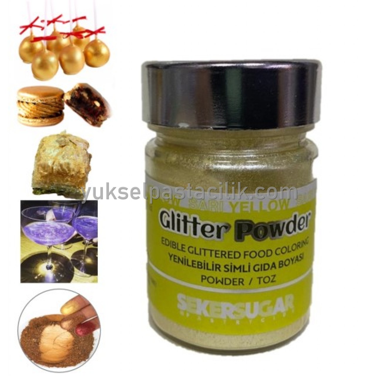 Şeker Sugar Glitter Yenilebilir Simli Sarı Toz Gıda Boyası 10 Gr